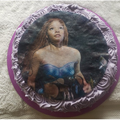 This enchanting cake features a custom edible image of Ariel, bringing the beloved character to life on a delicious, beautifully decorated cake.
